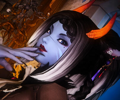 Born into a small hunting community sharing hunting territories with the Gridanians her early life was mostly peaceful. Raised primarily by her mother, and never knowing her father, she learned basic hunting and healing techniques needed by the group.One night a group of coeurl claws entered their camp and demanded they hand over their supplies. A fight broke out and the coeurl claws descended on them killing most of the group including her mother. She was taken captive and when she resisted she was hit in the face with the blunt side of one of the attacker's swords knocking her out and leaving a prominent scar across her nose, a permanent reminder of that night.After Swethyna hearing of the attack, she and her fellow wood wailers searched and rescued her a few months after the attack. This decision was controversial as the Keepers are generally incorrectly labeled as poachers trespassing in the Shroud.After her recovery she joined the conjurer's guild wanting to isolate herself from her past. While she was proficient at healing, she never felt accepted in the guild. Many people believed what happened to her was deserved and was a punishment for defiling the twelveswood. The small orange horns on her head didn't help matters much. Some say they mean she has ancient Drivanian blood coursing through her, others say it's proof that she is a monster.Later she ran into a dancer performing in Limsa and after the show she was offered a chance to learn the craft. She took the opportunity seeing it as a chance to escape her past and find a place to belong. Soon she realized the duality of her new profession. All were capable warriors, some were even more capable courtesans. She would end up falling into the latter category becoming a courtesan and working at several night clubs across Eorzea. That is, of course, when she isn't visiting other clubs stealing their patrons.During a rare outing outside of a club she ran into one of her friends that and was shown a bunch of photography projects she had been working on. The two talked for hours as she was shown the ins and outs of her friends work. This lead her to go out and get her own camera equipment to give it a go herself.While at first her pictures were very plain and well plain terrible she kept at it taking pictures of everyone and everything. Eventually she became adept at it and began making a bit of money on the side. As the days grew on she realized that not only did she enjoy this new hobby but that she could make a living doing it. She can often be spotted with a camera in hand taking pictures of all the good that is still in the world. That being said you can still find her atop a stage from time to time dancing away the night and giving others the warmth that she is known for.